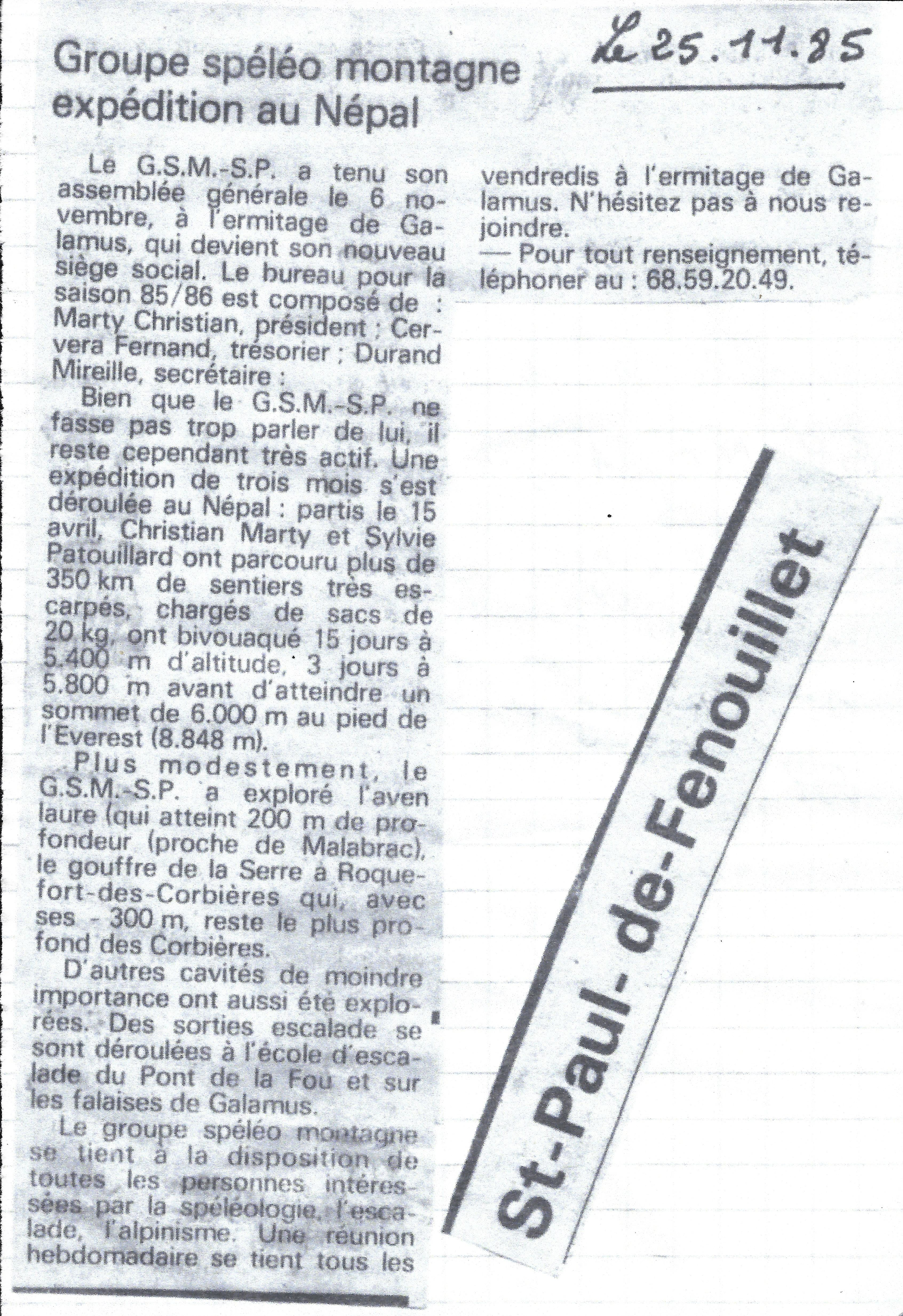 Des membres du Groupe Spéléo Montagne pratiquaient cette activité sur les falaises de Galamus et de la clue de La Fou ; et la proposaient aux plus ou moins jeunes (écoles entre autres).