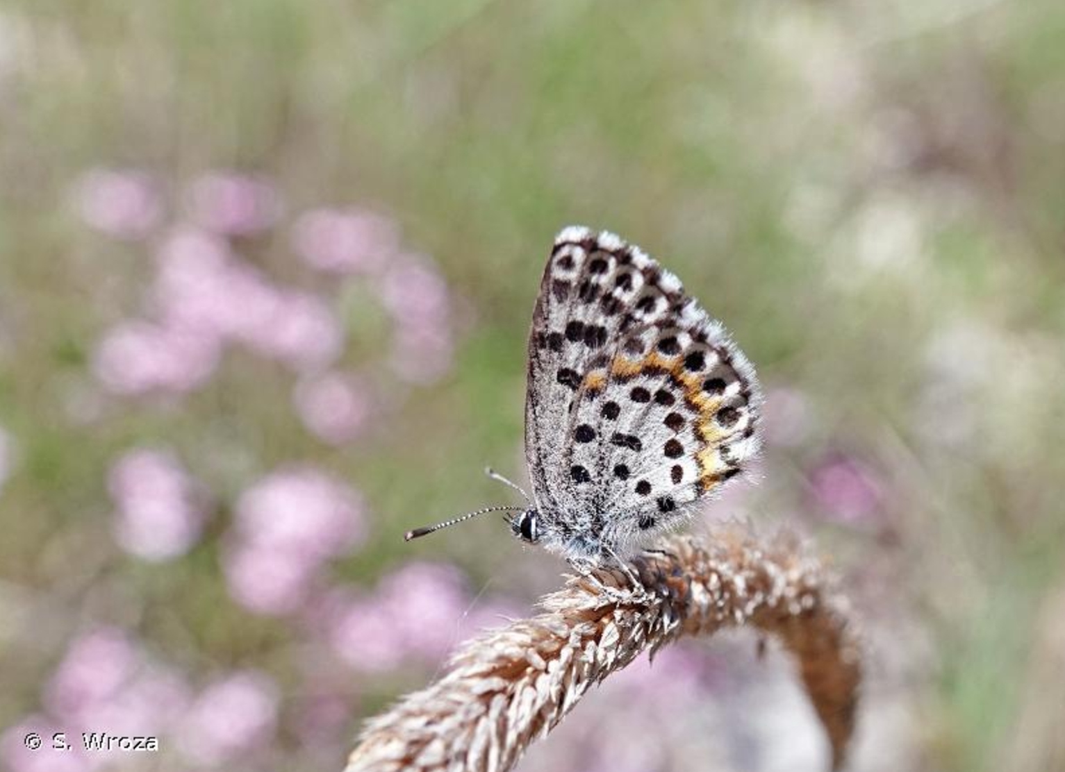 L'adulte est relativement simple à reconnaitre : la disposition caractéristique des points noirs le différencie des autres azurés.