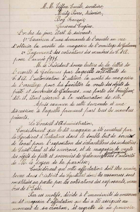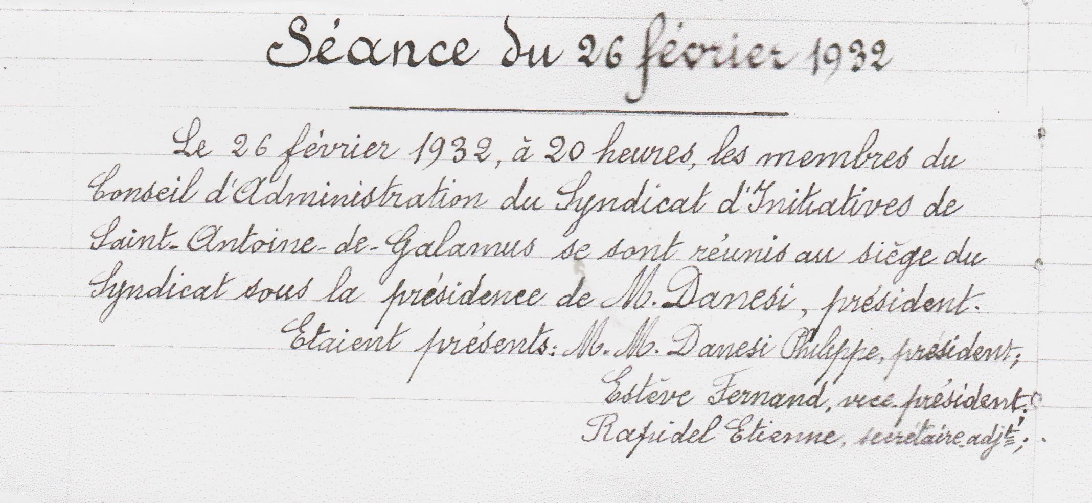 Demande refusée par le conseil d’administration du syndicat d’initiative en date du 26 février 1932.