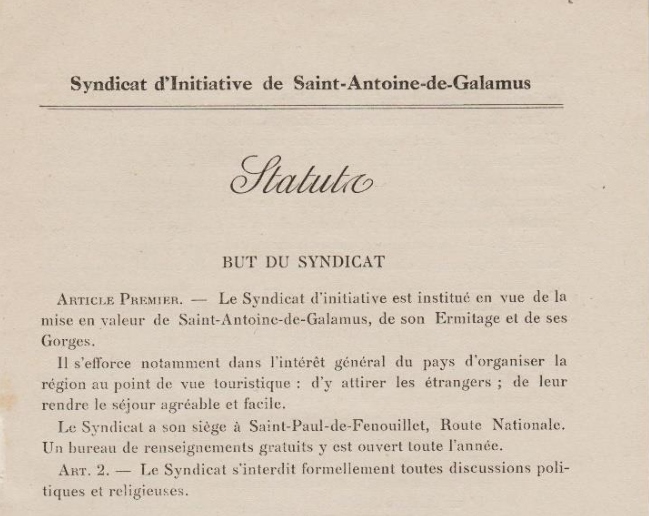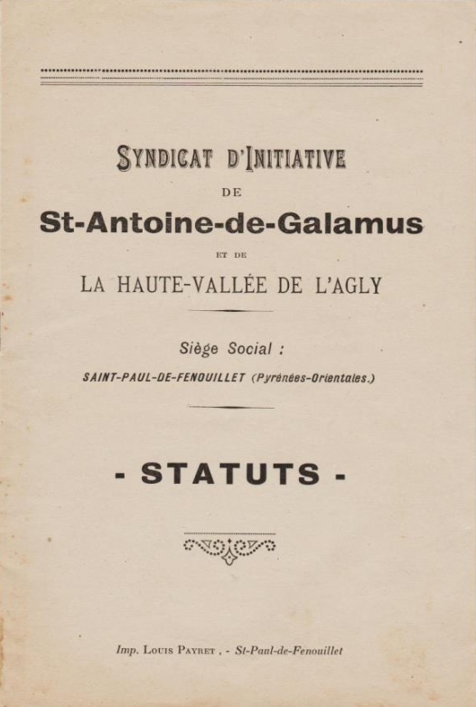 Le Syndicat d’Initiative de St-Antoine-de-Galamus et de la Haute-Vallée de l'Agly été mis en place au début du 20ème siècle pour assurer la gestion de l’ermitage.